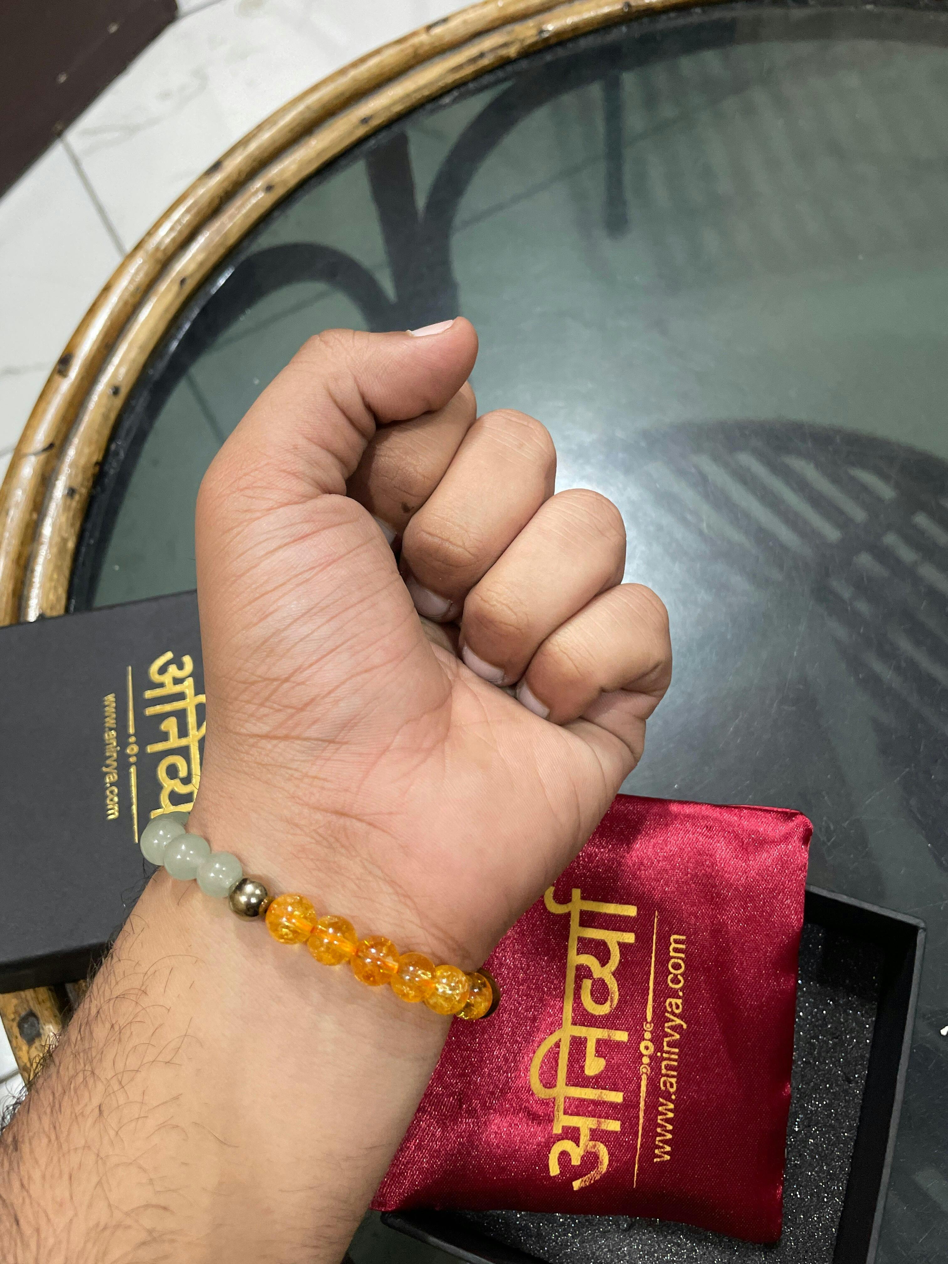 The KUBER MANI Bracelet boosts career growth, business success, and good luck using the energy of 5 natural crystals.