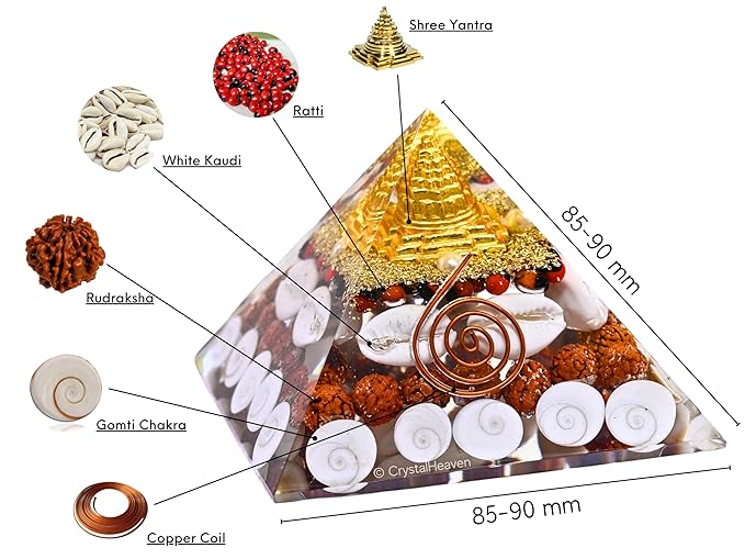 • ✅ About Sacred Elements :- Handcrafted using original Pyrite, Gomti Chakra, Rudraksha, Shree yantra, Ratti seeds, White Kodi, copper coil & resin etc.