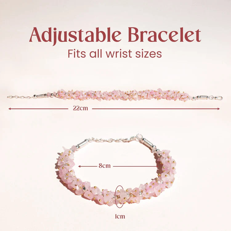 Love Attraction chips bracelet is a beautiful pink crystal known for its gentle and loving energy. Its a popular choice for those looking to attract love, strengthen relationships, and promote self-love.