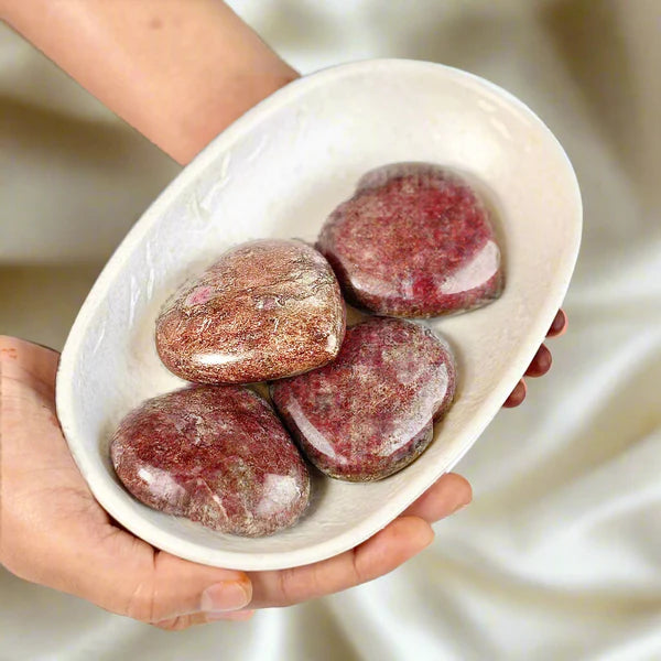 The Ruby in Fuchsite Heart combines the nurturing energy of Fuchsite with the vibrant vitality of Ruby, supporting emotional healing and enhancing self-worth. This 2-inch stone, weighing approximately 90–100 grams, aligns the heart and root chakras, making it a powerful tool for meditation and energy work. Minor scratches and natural imperfections highlight its authenticity and unique beauty. Ideal for daily self-care rituals, this heart carving offers a gentle yet empowering presence, exclusively available at The Trivia Store.